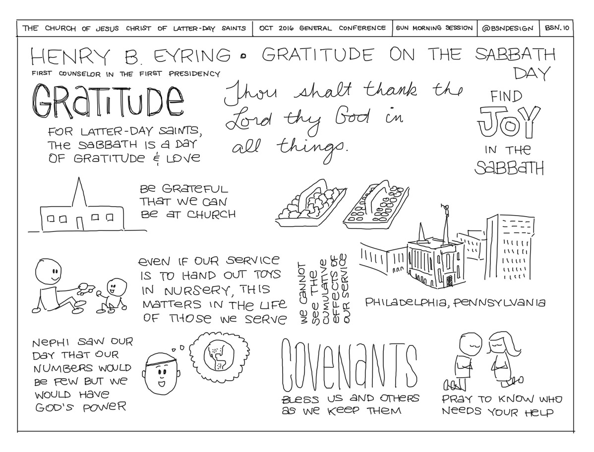 Find joy and gratitude in the Sabbath #Sketchnotes from Henry B. Eyring in the Sunday morning session of General Conference ✍🏼⛪️